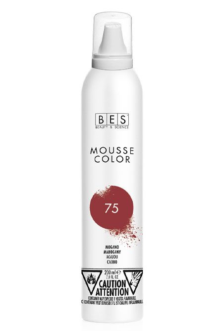 BES Mousse Color 75, mahagón tužidlo na vlasy, farebné tužidlo mahagón, mahagónová farba na vlasy, tónovacia pena mahagón, dočasná červenohnedá farba