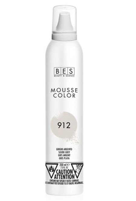 BES Mousse Color 912, strieborné šedé tužidlo, farebné tužidlo na blond vlasy, strieborná pena na vlasy, tónovanie sivých vlasov, dočasná sivá farba na vlasy