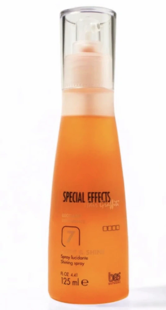 BES Special Effects č. 7 je profesionálny sprej pre okamžitý lesk, ktorý dodáva vlasom žiarivý, hladký a upravený vzhľad bez zaťaženia či zlepenia. Ideálny je na dokončenie účesu, zvýraznenie farby a dodanie luxusného lesku po úprave vlasov.