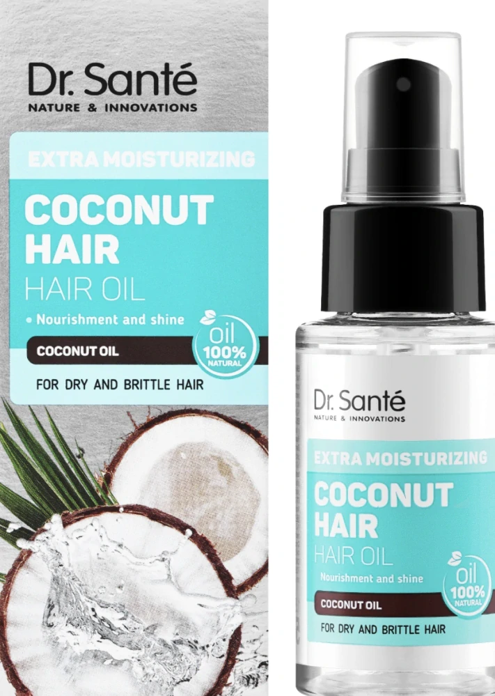 Dr. Santé Coconut Hair olej na vlasy s objemom 50 ml je produkt určený pre starostlivosť o suché a lámavé vlasy. Jeho hlavnou zložkou je kokosový olej, známy svojimi hydratačnými a vyživujúcimi vlastnosťami.