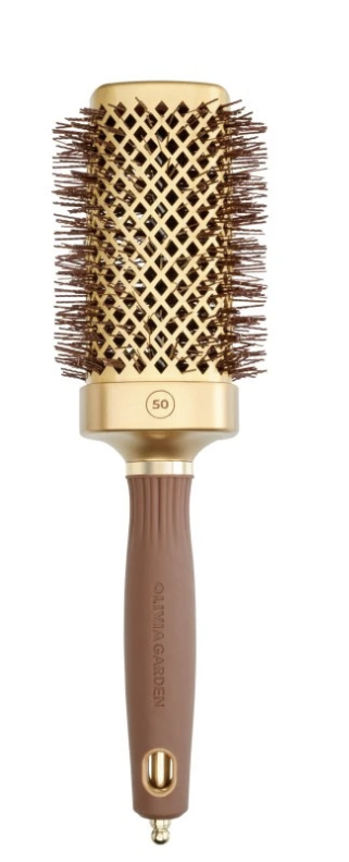 Profesionálna kefa Olivia Garden Expert Straight Gold & Brown je špeciálne navrhnutá na vyrovnávanie vlasov počas fénovania. Hranaté telo kefy zaisťuje pevnejší záber prameňa, čo umožňuje aktívne narovnávať vlasy už pri samotnom sušení.