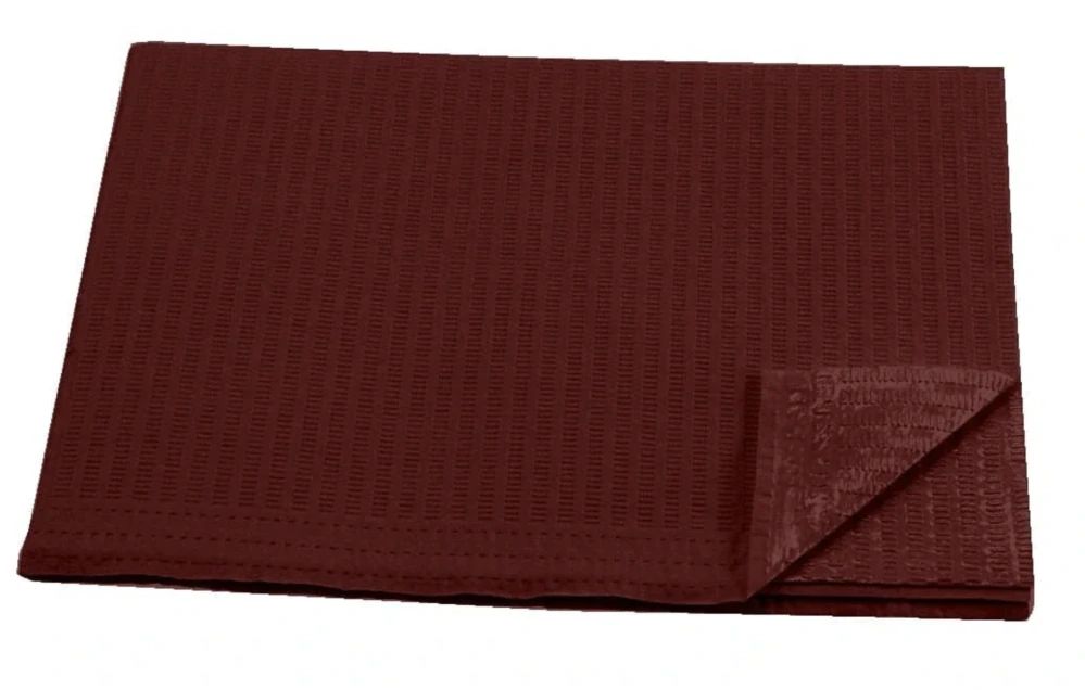 Dentálne obrúsky sú vyrobené z trojvrstvového celulózového papiera kombinovaného s polyetylénovou fóliou, ktorá zaručuje úplnú vodotesnosť. Vďaka vysokej savosti celulózy zostáva oblečenie pacienta počas ošetrenia suché a čisté, zatiaľ čo PE fólia bráni presakovaniu tekutín.