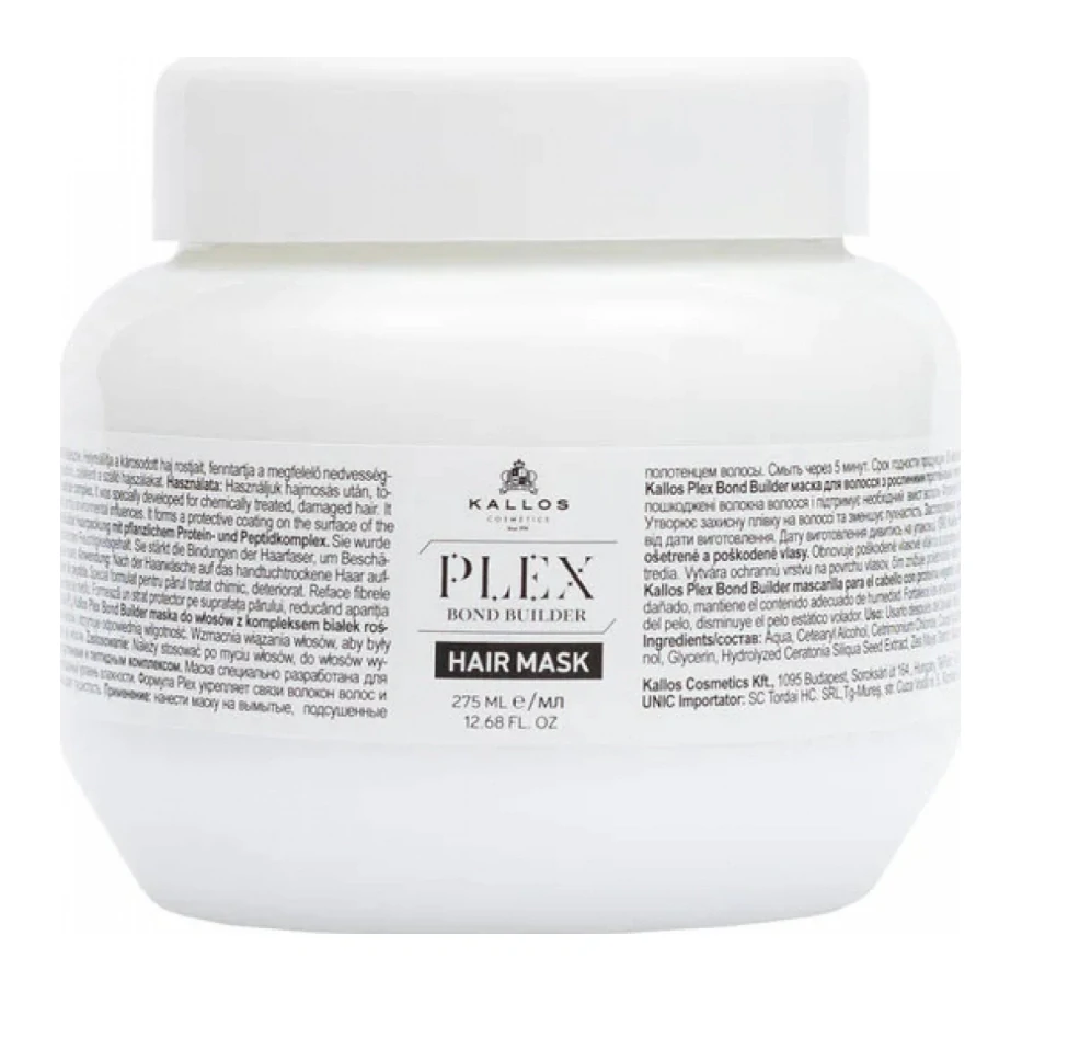 Kallos PLEX Maska je intenzívna regeneračná maska, určená pre poškodené, chemicky ošetrené a oslabené vlasy. Obsahuje špeciálnu Plex formulu, ktorá preniká do vlasového vlákna, posilňuje ho zvnútra a obnovuje jeho štruktúru. Vlasy sú po aplikácii hladké, pružné a zdravé na pohľad aj na dotyk.