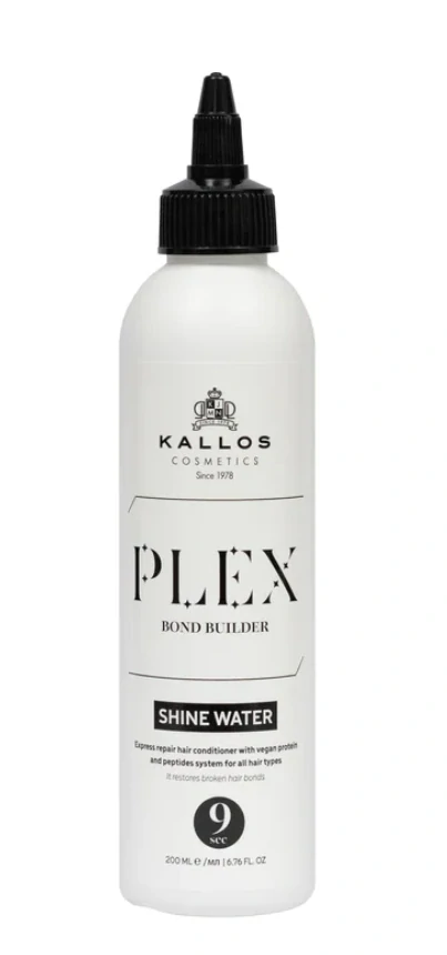 Kallos PLEX Shine Water je ultrarýchly expresný kondicionér, ktorý poskytuje okamžitú regeneráciu, uhladenie a lesk vlasom už za 9 sekúnd. Obsahuje Plex technológiu, ktorá posilňuje a obnovuje vlasové vlákno zvnútra, čím pomáha predchádzať lámavosti a štiepeniu končekov.