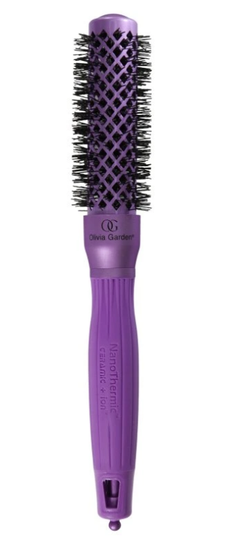 Okrúhla fúkacia kefa Olivia Garden Nanothermic Violet Edition – limitovaná edícia s keramicko-iontovou technológiou pre rýchle sušenie, hladké a lesklé vlasy bez frizzu.