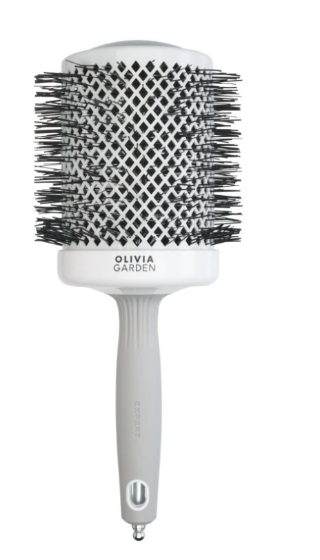 Profesionálna keramická guľatá kefa Expert Blowout White & Grey – rýchle sušenie, hladký lesk, minimálny frizz a perfektný objem. Ideálna pre salóny aj domácu starostlivosť.
