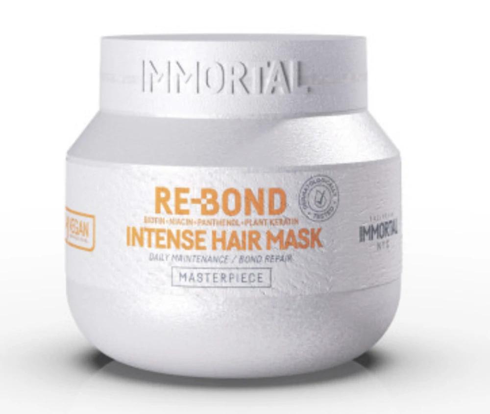 intenzívna regenerácia, výživa, poškodené vlasy, suché vlasy, rastlinný keratín, biotín, niacín, maska na vlasy, RE-BOND, IMMORTAL NYC