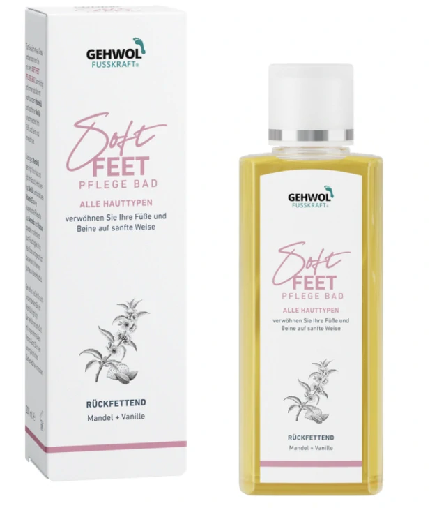 Soft Feet Pflegebad je luxusný pestujúci kúpeľ na nohy, ktorý poskytuje intenzívnu starostlivosť, hydratáciu a osvieženie unavených chodidiel. Jemná formula s aktívnymi zložkami zmäkčuje drsnú a suchú pokožku, podporuje jej regeneráciu a zanecháva nohy hebké, jemné a svieže.