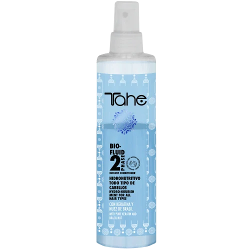 Tahe BIO-FLUID 2-PHASE, Tahe kondicionér, dvojfázový kondicionér, kondicionér bez oplachovania, kondicionér pre všetky typy vlasov, hydratácia vlasov, výživa vlasov, starostlivosť o vlasy, bezoplachová starostlivosť, lesklé vlasy, hebké vlasy, rozčesávanie vlasov, ochrana pred teplom, UV ochrana vlasov, profesionálna vlasová kozmetika, kondicionér Tahe, regenerácia vlasov